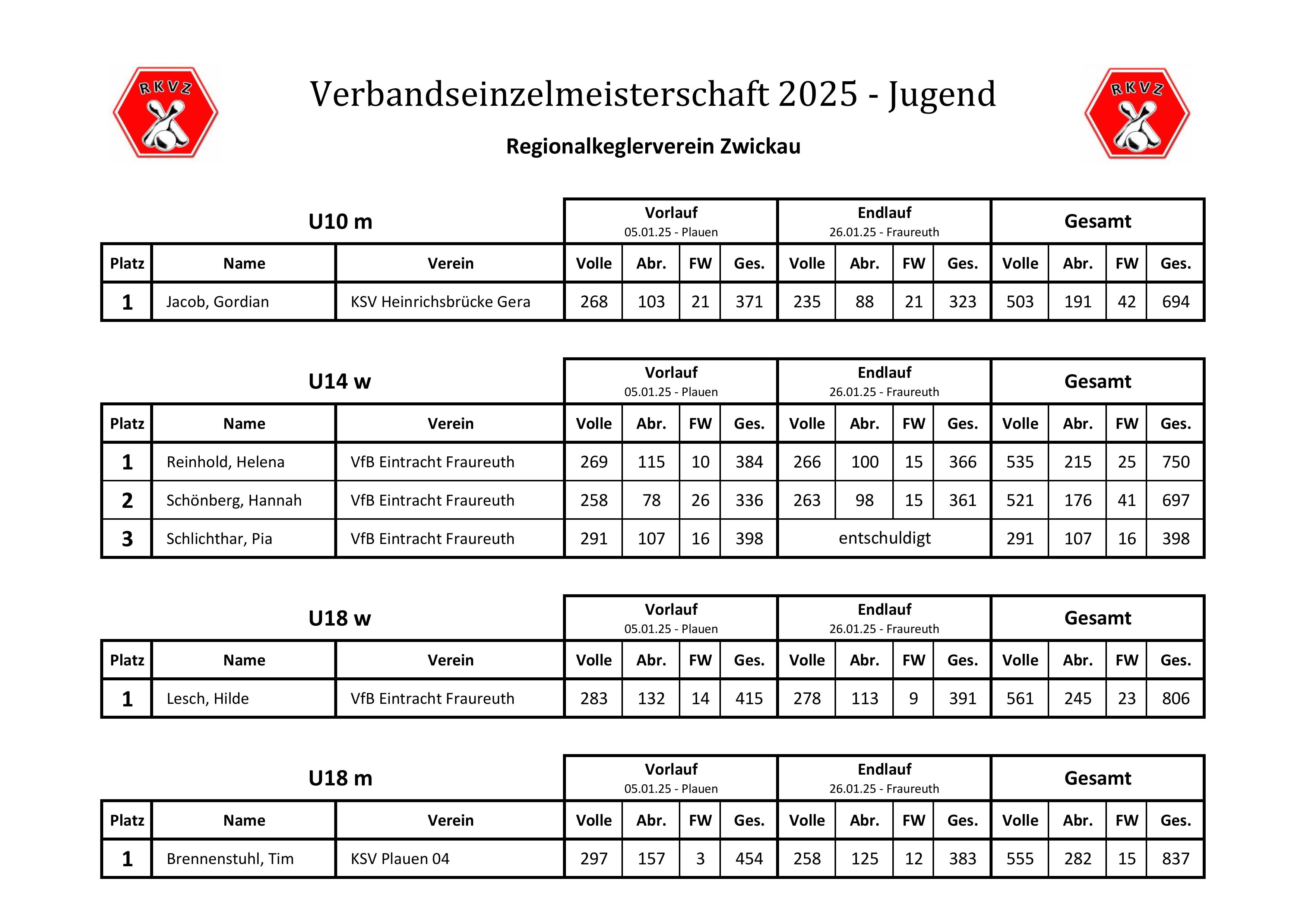 Ergebnisse KL Zwickau